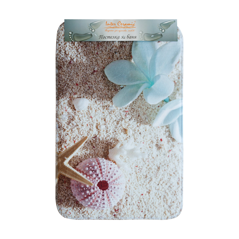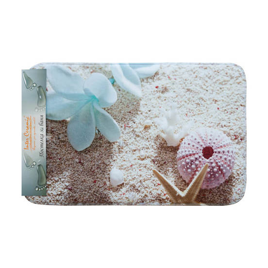Bath mat INTER CERAMIC with a rectangular shape and dimensions 45 x 70 cm. The mat has a right "white flowers with mussels". The upper part of the bath mat is made of 100% microfiber and the lower part is 100% synthetic rubber. Synthetic rubber will not allow the bath mat to slip. The design of the bed with marine motifs creates a mood and adds a new charm to the interior of your bathroom.