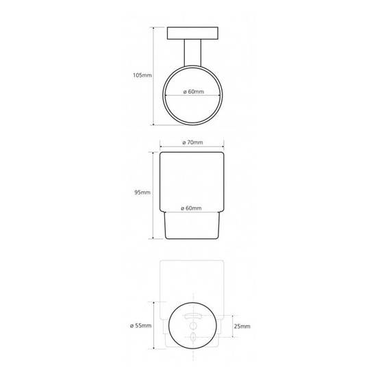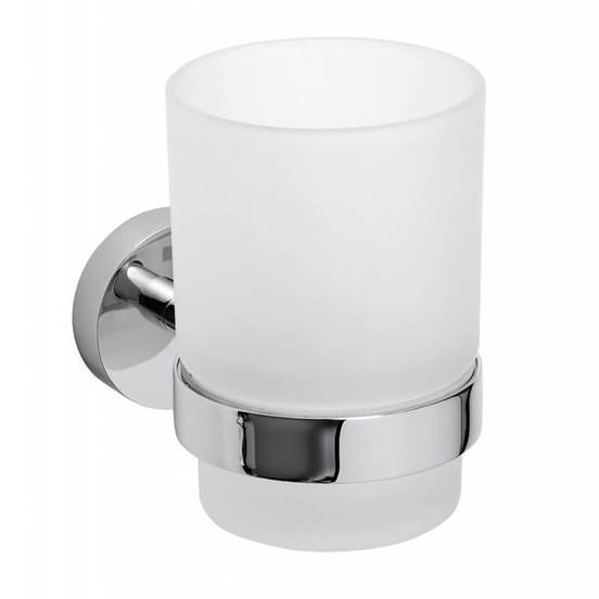 High quality wall holder for brushes and toothpaste with a glass cup from the Omega series of the BEMETA brand and with dimensions (W x H x D) 70 x 95 x 105 mm. The bathroom accessory is made to high quality standards. The material used to make the wall holder for brushes and toothpaste is solid brass with a glossy chrome finish. In combination, these two materials are most preferred for the manufacture of high quality bathroom accessories. They are not affected by moisture, do not rust and would be very difficult to scratch. The glass from which the cup is made is tempered and frosted.