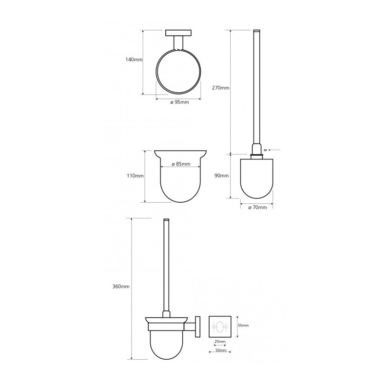 Toilet brush from the Beta series of the BEMETA brand. The bathroom and toilet accessory is made to high quality standards and has dimensions (W x H x D) 95 x 360 x 140 mm. The material used for the construction is solid brass with a glossy chrome finish. In combination, these two materials are most preferred for the manufacture of high quality bathroom accessories. They are not affected by moisture, do not rust and would be very difficult to scratch. The cup of the toilet brush is made of tempered and frosted glass. In addition to quality, the BEMETA toilet brush also offers a beautiful design suitable for any modern bathroom. It is best combined with other bathroom accessories from the same series.