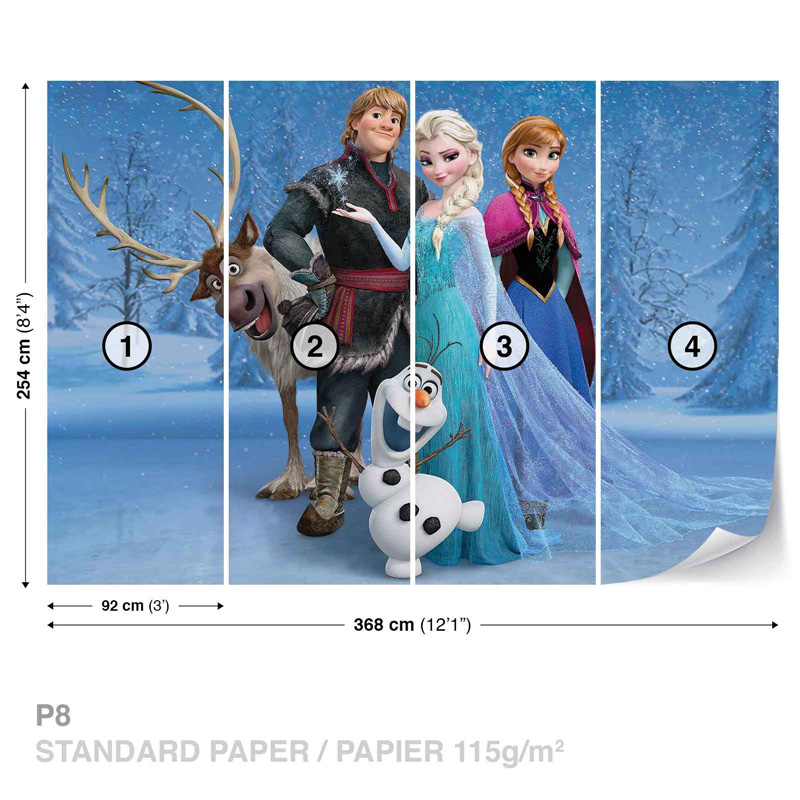 High quality, wide format photo wallpaper for a children's room with an image from the Disney children's movie - The Frozen Kingdom. Photo wallpaper is suitable for placing the wall in any room that is not exposed to high levels of humidity.