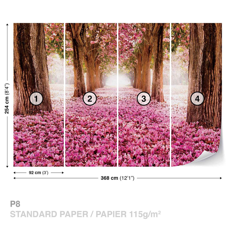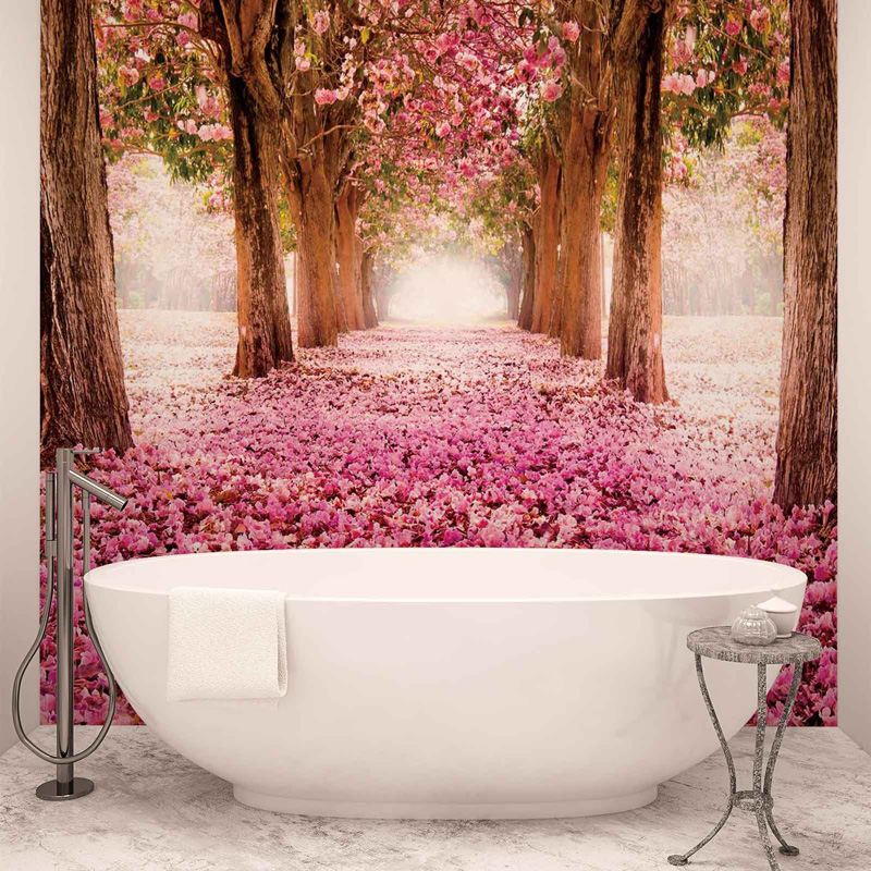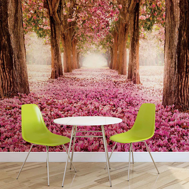 High quality, wide format photo wallpaper with a beautiful 3D image that will take you to a fabulous forest path strewn with pink flowers. Photo wallpaper is suitable for placing the wall in any room that is not exposed to high levels of humidity.