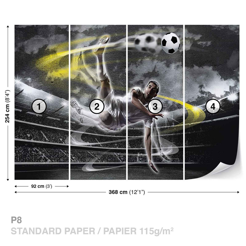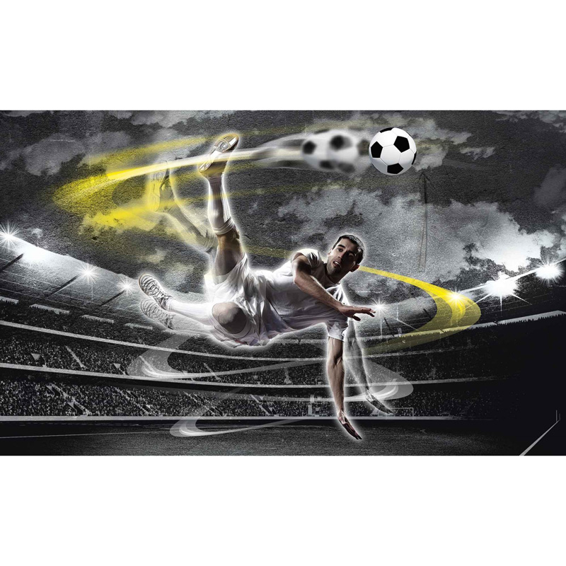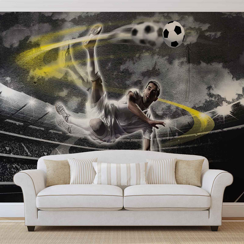 High-quality, wide-format photo wallpaper for a child's room with an abstract image of a football player. Photo wallpaper is suitable for placing the wall in any room that is not exposed to high levels of humidity.
