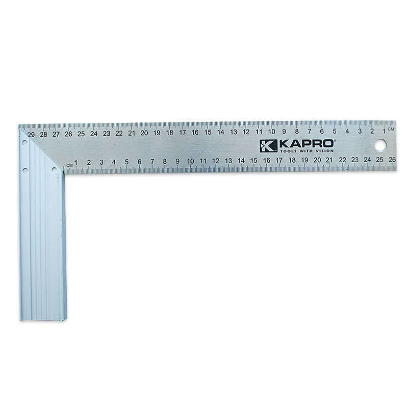 Steel right angle KAPRO 033 KPO 057, with side length 300mm x 159mm. The measuring scale is divided into inches and centimeters. The locksmith device is made of high quality steel, characterized by high durability and resistance to mechanical changes. It is equipped with an aluminum handle, providing convenience in measurements. The surface is stainless steel, guaranteeing protection against corrosion, mechanical and temperature changes. The thickness of the locksmith tool is 12 mm, and its sides are located at right angles, allowing measurements of 90° and 45°. The steel device KAPRO 033 KPO 057 provides convenience and efficiency in the measurements required for construction and repair, locksmith, carpentry and other activities.