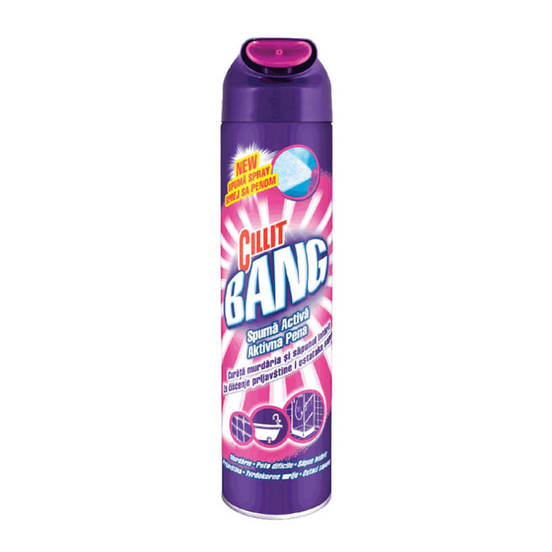 CILIT brand Bang bathroom and sanitary ware in the form of spray foam. The product is especially effective when it is necessary to remove layers on tiles, sinks, bathtubs, showers, faucets, jacuzzis, toilets, bidets, urinals and more. The detergent for baths and sanitation is extremely useful in counteracting the appearance of bacteria and spores. It refreshes toilets and wet rooms, giving them a characteristic shine, gloss and cleanliness.