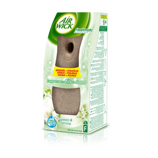 AIRWICK brand fresh air freshener + spray filler set. With aroma of freesia and jasmine. Designed to freshen the air in residential and office premises, small shops and more. Aromatizes the air without being intrusive.
