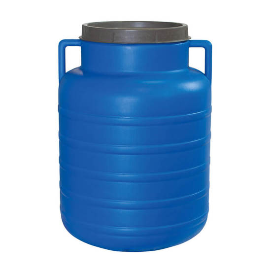 Plastic can with a capacity of 60 liters. It is made of certified plastic for food and liquids. It is suitable for both food and non-food products.