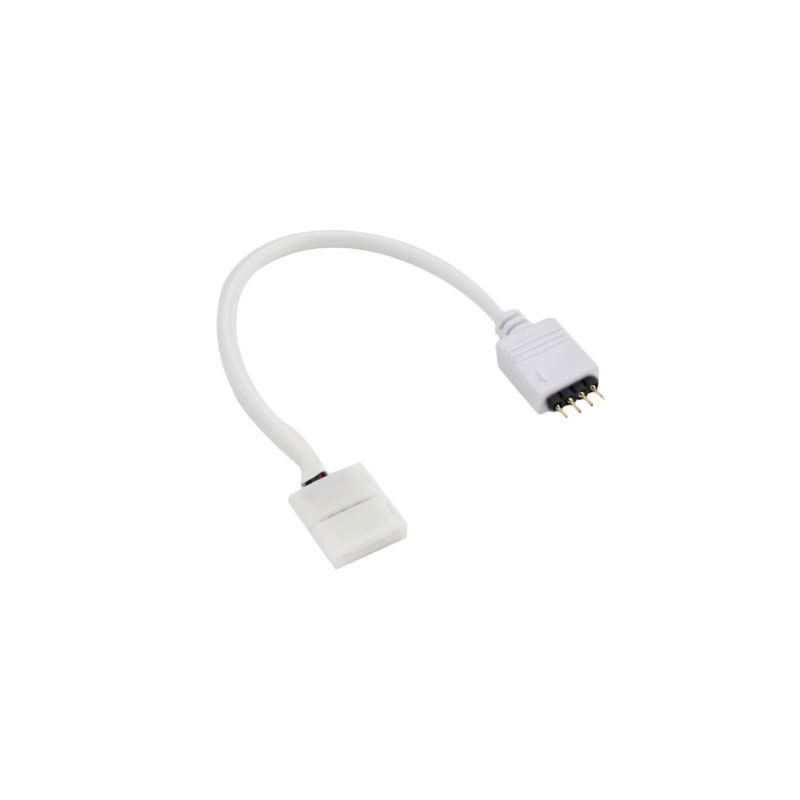 LIGHTEX LED strip connector with cable for connecting an RGB controller, type SMD 5050. With this type of component, the energy-saving SMD LED is mounted and soldered on a board. The acronym comes from Surface Mount Device, which initiates a surface-mounted device. Such devices do not emit heat and have low energy consumption. The connector is 10 mm wide. With its help they are connected to separate LED strips. This is done quickly and conveniently. The connection is also aesthetically pleasing. Individual tapes can also be connected to power supplies or controllers. This alternative is better than using ordinary cables and soldering them. With LED strip connectors, the connection is more beautiful and convenient. For this purpose, the individual pieces must be cut in the designated place. Then, the strips are tucked under the metal legs, after which these legs are closed. It is necessary to observe the direction of the positive and negative poles.
