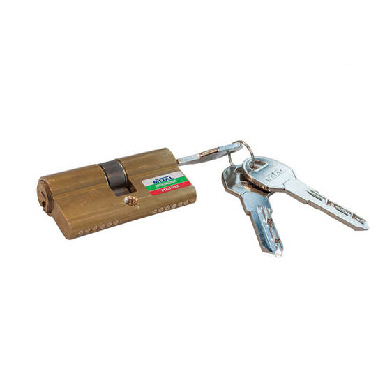 Symmetrical, pit, secret lock of METAL, made according to BDS standard. The lock cartridge measures 30 x 30 mm. The lock is designed for installation of front doors of residential and public buildings, businesses, offices, shops and more. Provides a high degree of protection with frequent use. The product is made with a body of high quality metal with nickel coating. The springs of the pins are made of bronze wire. The secret lock has five brass pins. The thumb of the cartridge is made of metal-ceramic, made according to the standards BDS 6977-84 and DIN V 18252. The secret lock is available with three brass keys, with nickel coating. The lock has a steel, galvanized, fixing screw type M5 x 55. The set of combination lock and keys are resistant to atmospheric and temperature changes, corrosion and moisture.