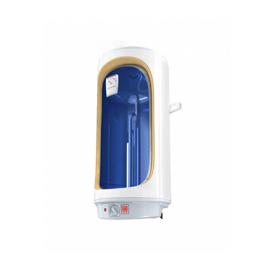 The water heater has a flange at the bottom, a protective plastic panel and a non-return valve. The housing of the model GCV 50 38 16D D06 TS2R consists of a steel tank containing water and a casing, which is an outer shell. Between them is thermal insulation made of environmentally friendly high-density polyurethane foam and two G-threaded pipes. One is for supplying cold water marked with a blue ring and the other for discharging hot water marked with a red ring.
