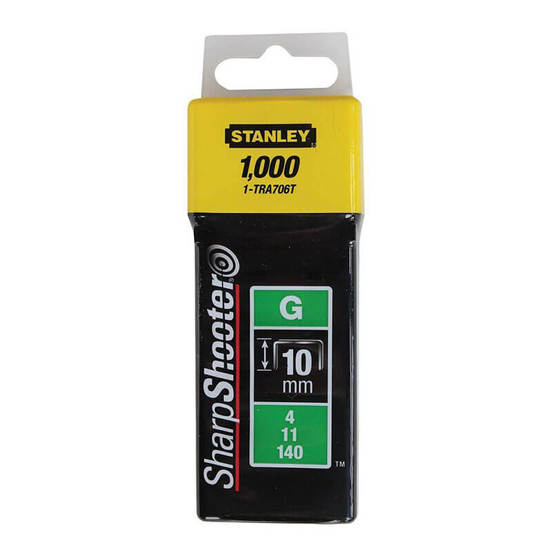 Set of 1000 steel clamps for G11 type tacker. They are designed for fixing cables on concrete and wooden surfaces, as well as for light home repairs. Available in size 10mm. The brackets are made of solid, galvanized steel wire with proportions of 10.6 x 1.25 mm. Can be used with tackers of the STANLEY brand. The packaging of the brackets is compact and strong, protecting them from damage.