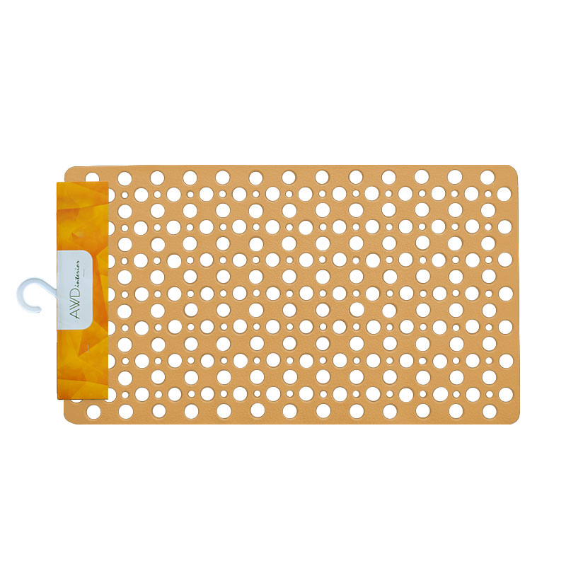 Rubber bath mat measuring 74 x 42 cm in beige. The bathroom mat is equipped with suction cups that stick firmly to the bathroom floor and do not allow slipping. The mat is also suitable for placing in showers and bathtubs. Thanks to the material from which it is made, it is extremely easy to maintain. It does not need to be washed and retains its colors throughout the period of use.