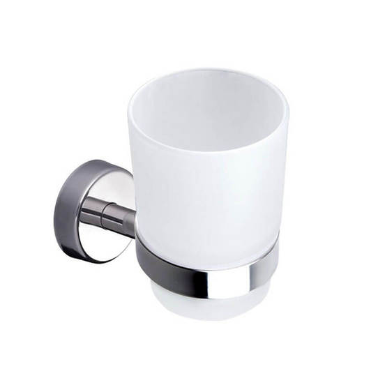 Wall bracket with glass cup for brushes and toothpaste from the Moderno series of the KAPITAN brand. The brush and toothpaste holder is made of high quality stainless steel with stainless steel coating.