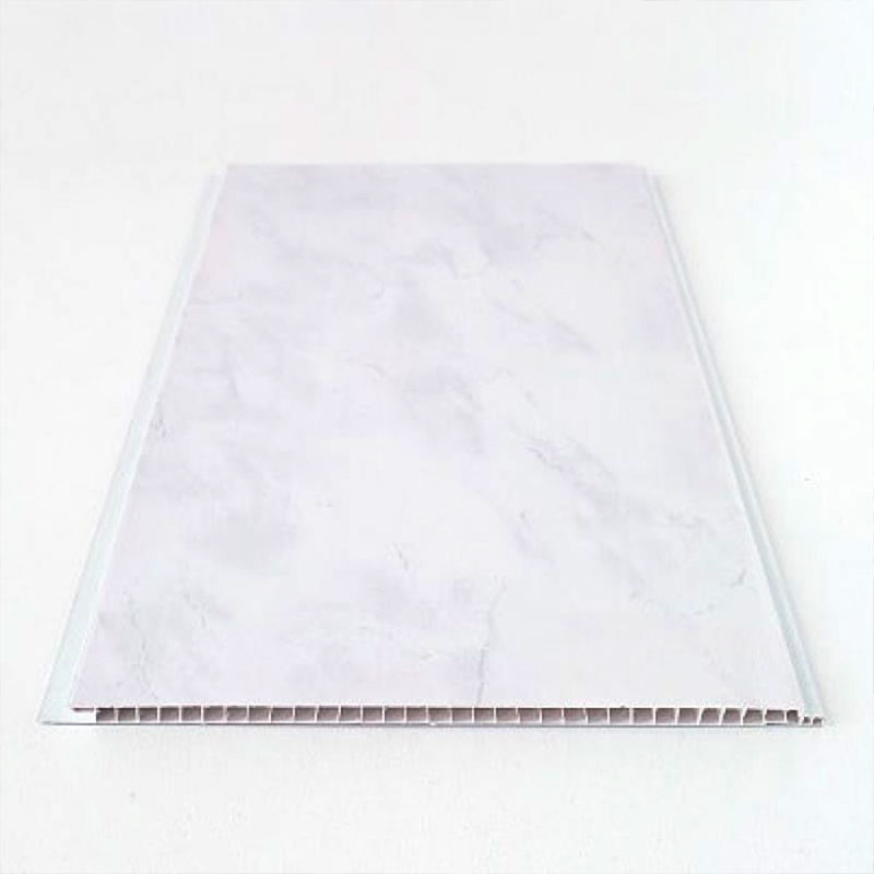 Waterproof PVC paneling without joints and with dimensions 8 mm x 25 cm x 270 cm. With its glossy surface and high quality printing, PVC cladding successfully mimics marble.