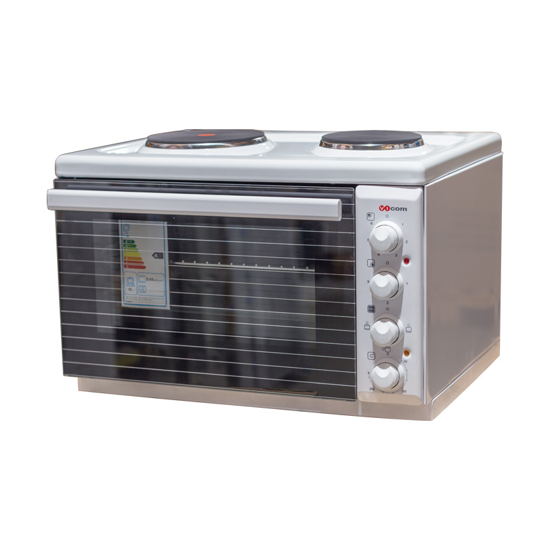 Small and compact kitchen oven VICOM C20E suitable for use in small homes, apartments and dormitories. The oven has two electric hobs with dimensions Ф180mm and Ф145mm, as well as two reotans - upper and lower. The inside and outside of the oven are enameled, which ensures faster and easier cleaning after cooking.