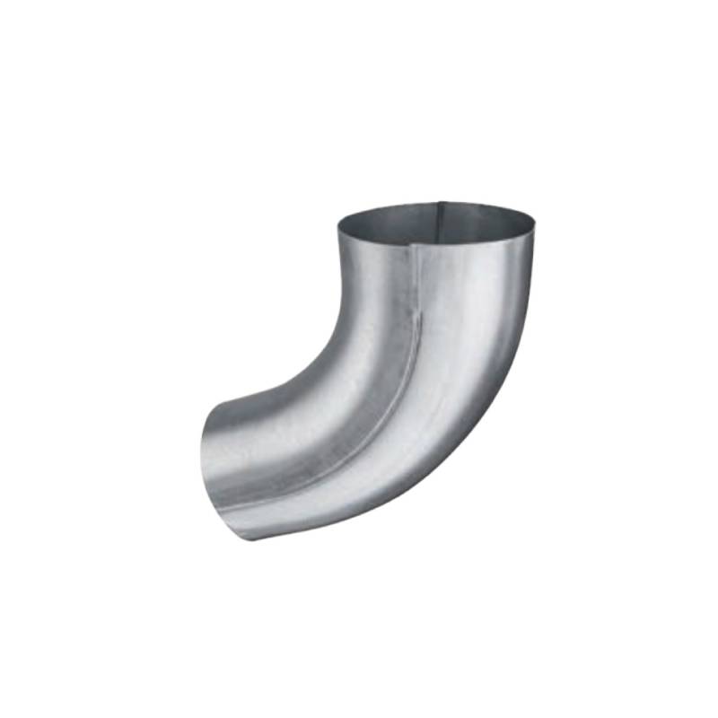 Galvanized elbow with hole size ф100 and angle 85° of the KJG brand. Galvanized sheet metal is one of the most famous and widespread materials, thanks to its low price and high quality. It is not as resistant to corrosion as colored galvanized sheet metal, which is the only drawback of this material. To improve the quality of galvanized sheet metal, it is desirable to cover it with additional surface protection.