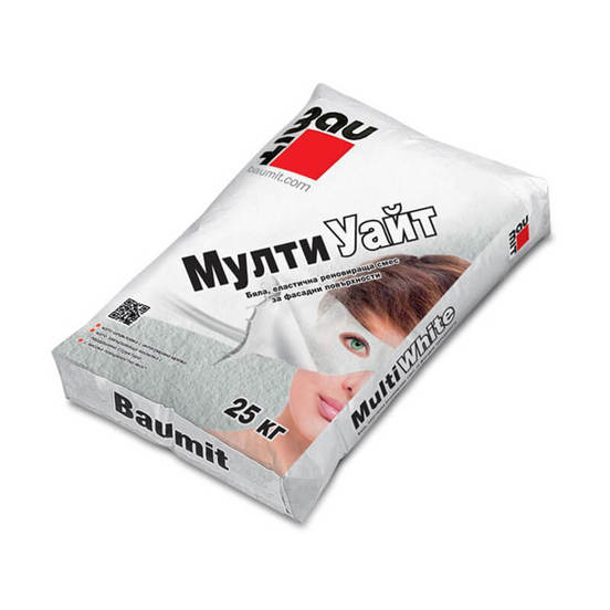 BAUMIT's Multi White putty is a white, elastic, renovating compound especially for façade surfaces - integrated thermal insulation systems or for mineral plasters. It is used as a connecting bridge, as a putty on concrete or as a finishing plaster with a chipped structure. It is suitable for manual and machine processing. For external and internal use.