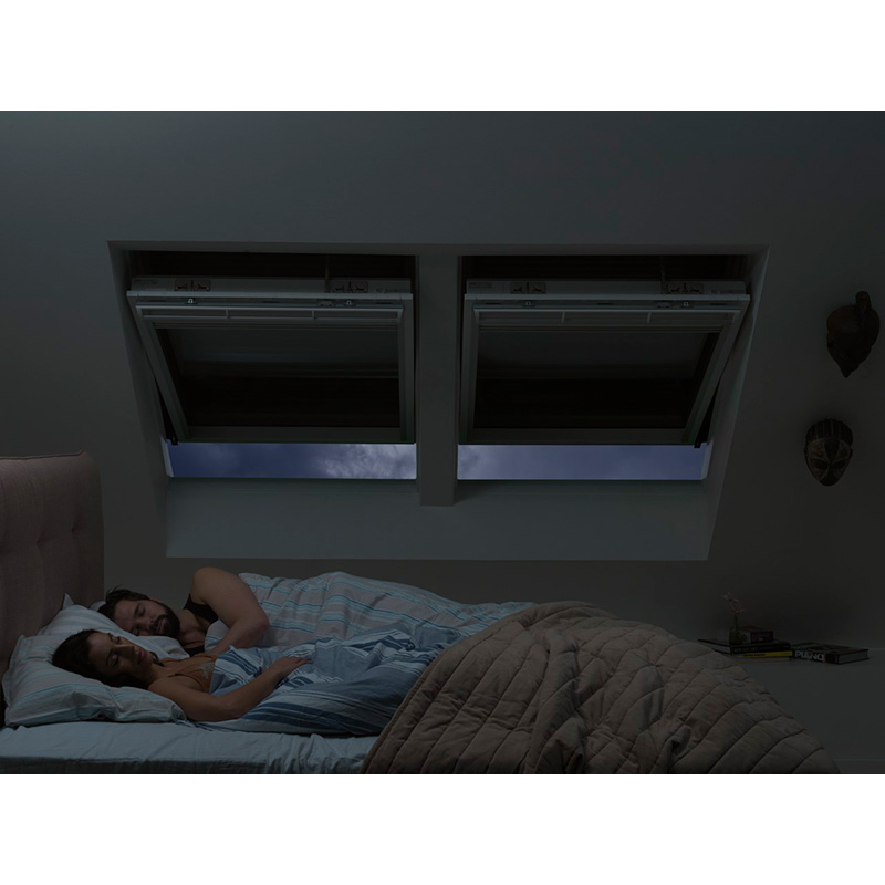 External roller blind SML for roof window MK06 78 x 118 cm of the VELUX brand. The blind is electrically operated. It offers complete climate control in the room, protecting the home from overheating in summer and improving the insulation of the roof window by up to 17% in winter. Reduces heat flow by up to 94%. Provides complete blackout and reduction of noise from rain and hail, thus creating a peaceful environment for sleep and rest. It is made of aluminum with polystyrene foam filling and integrates perfectly with the cladding.