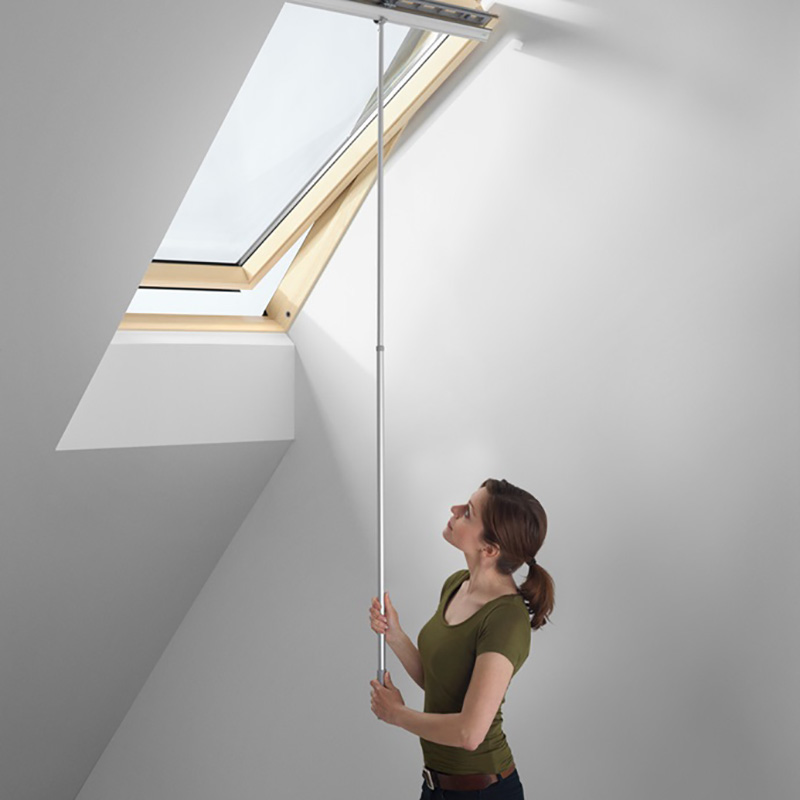 Telescopic control rod ZCT 200K of the VELUX brand. Used for manual control of high-mounted skylights and VELUX interior blinds. The rod has a length of 100 to 183 cm and a convenient nozzle for opening windows and blinds. It can control windows of GZL, GGL and GGU models, as well as internal blinds DKL, RFL, FHL and PAL.