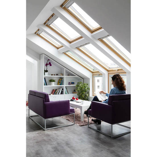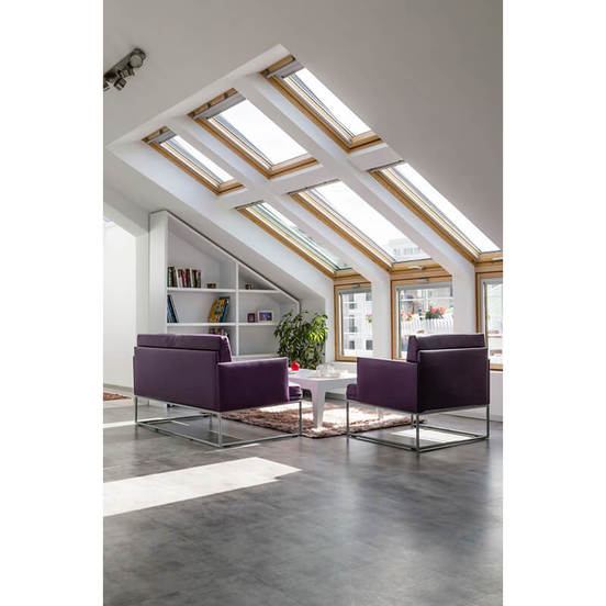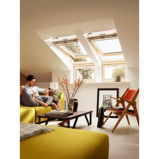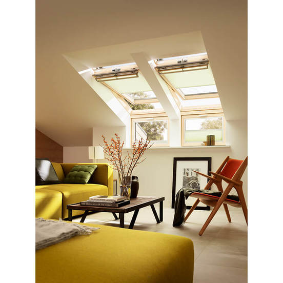 Vertical element VFE 3070 for roof window SK 35 114 x 95 cm of the VELUX brand. Serves only as a combination. It is installed on a vertical wall/overhang directly below the roof window, placed on a slope with a slope of 15˚-55˚.