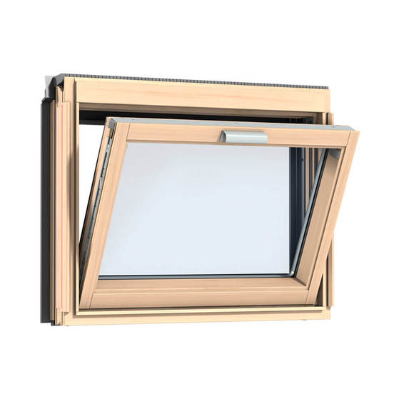 The frame of the element is made of natural wood with lacquer finish. With laminated double glazing. It has an original drainage system. The model has 2 stages of opening: for ventilation and for cleaning.