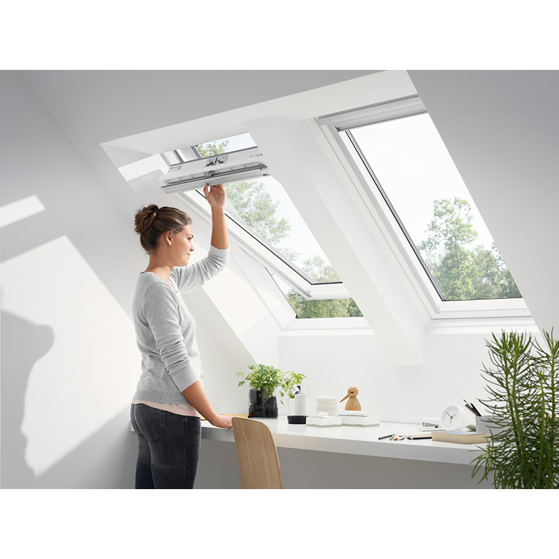 GLU 0051 roof window from the VELUX Standard series. Made of aluminum. The window has the code MK04 78 x 98 cm. It is a model with a central opening axis and upper control, which is more preferable than the lower one. The advantage of the aluminum upper handle is that it makes window control easy and convenient. At the same time, this type of control allows you to place furniture under the window. In addition, the handle has a built-in ventilation hole, which allows clean and fresh air to enter the room, even if you are not there. It should also be emphasized that the unique upper handle now has a new, modern design - even more comfortable to grip and with an elegant look.