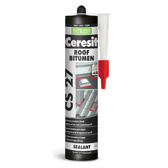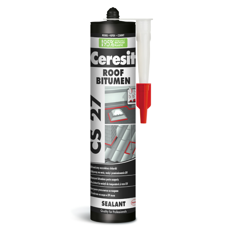 Bituminous sealant Ceresit CS 27 for sealing joints on roofs, holes and cracks. It can be applied to seal joints between drains and roof elements. The sealant is suitable for easy and quick repair of roof leaks, as well as for gluing and repairing roofs without heating.