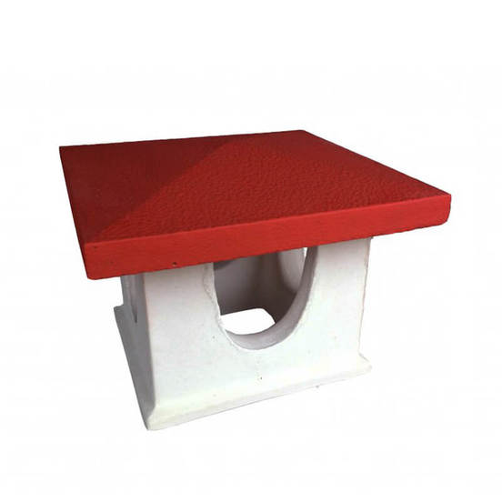 Concrete chimney cap. The chimney cap is designed to prevent rainwater and debris from entering the chimney.