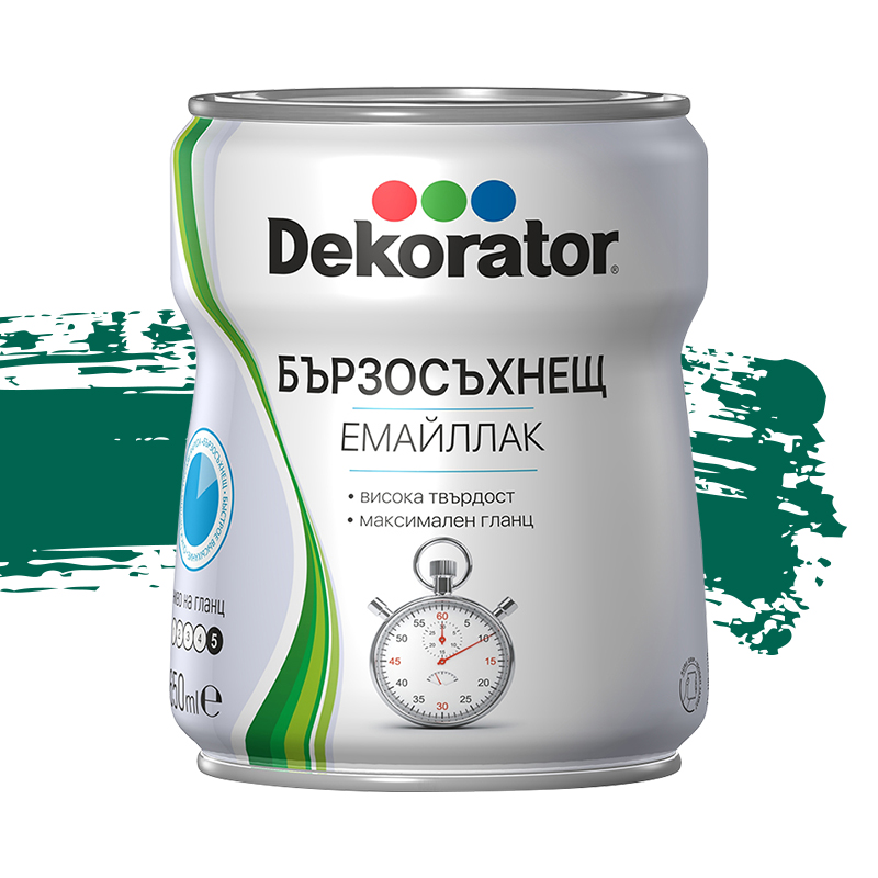 DEKORATOR quick-drying enamel is designed for indoor and outdoor use. It is suitable for use on wood and metal.It has a high level of gloss, is characterized by high hardness and resistance to weathering.