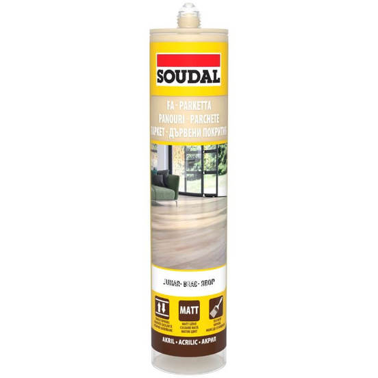 SOUDAL Acrylic Silicone for Wood is a high-quality water-based sealant, specially developed for working with wood and laminated materials. Thanks to its elasticity and excellent adhesion, it guarantees long-lasting and reliable filling of holes, cracks and joints without damaging the base. The product is widely used in the installation and repair of parquet, laminate flooring, wooden panels, door and window frames, moldings and other elements. The silicone prevents cracking and provides a clean and aesthetic finish, while not staining wooden surfaces.