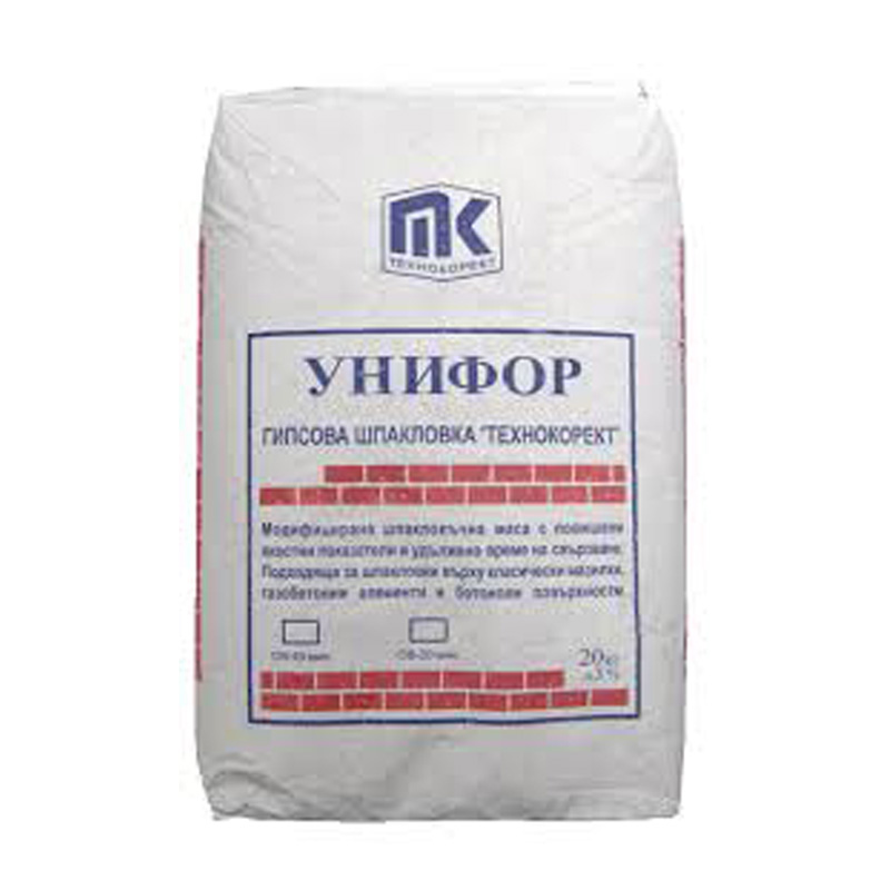 The required working consistency is obtained by gradually adding water and stirring vigorously. Thanks to chemical additives "Unifor" maintains working density for up to 35-40 minutes at a temperature of 5 -25°C, which helps to make full use of the mixed quantities.