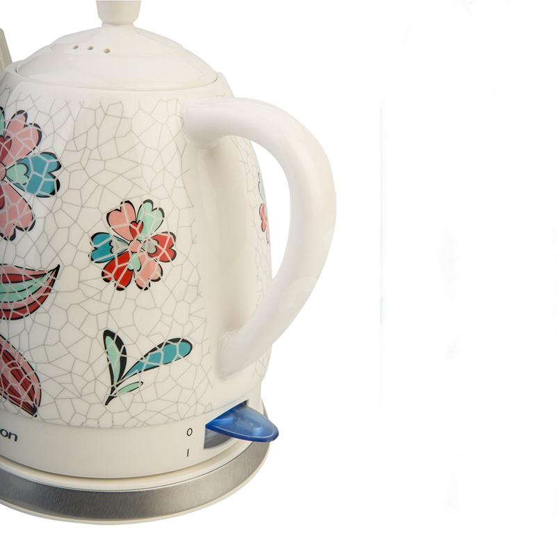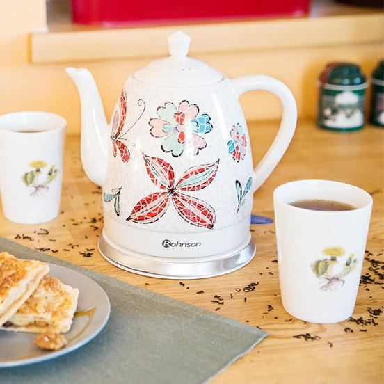 The Rohnson R-7802 electric kettle is designed for those who appreciate the combination of classic materials and modern technology. With a capacity of 1.5 liters, it is perfect for making tea, coffee or other hot drinks for the whole family or company. The ceramic body not only gives a unique look and sense of style, but also retains heat better, while not changing the taste of the water.