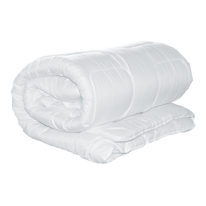 Lightweight microfiber duvet CM2 made in Bulgaria is filled with silicone wool. The blanket is white and measures 150 x 210 cm. Its density is 150 g/m2.