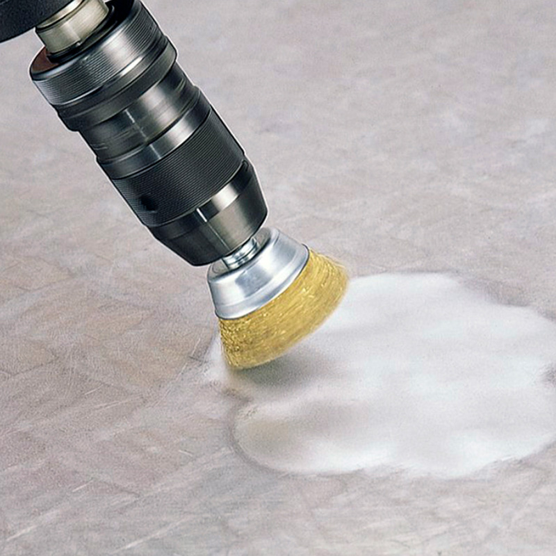 Cup-shaped wire brush for removing rust and cleaning from welding residues when working with metals, sheet metal, steel wire and others.