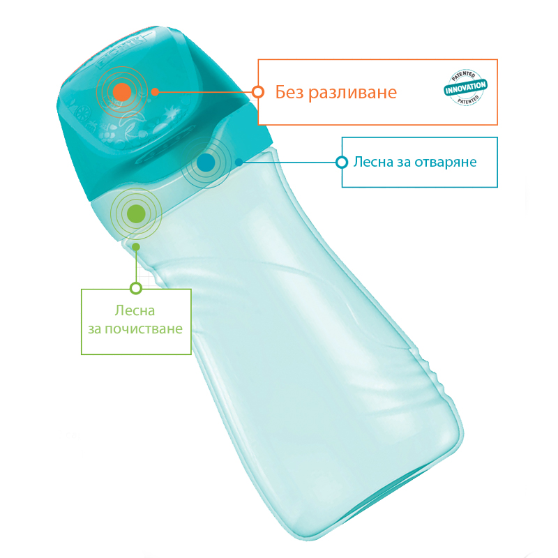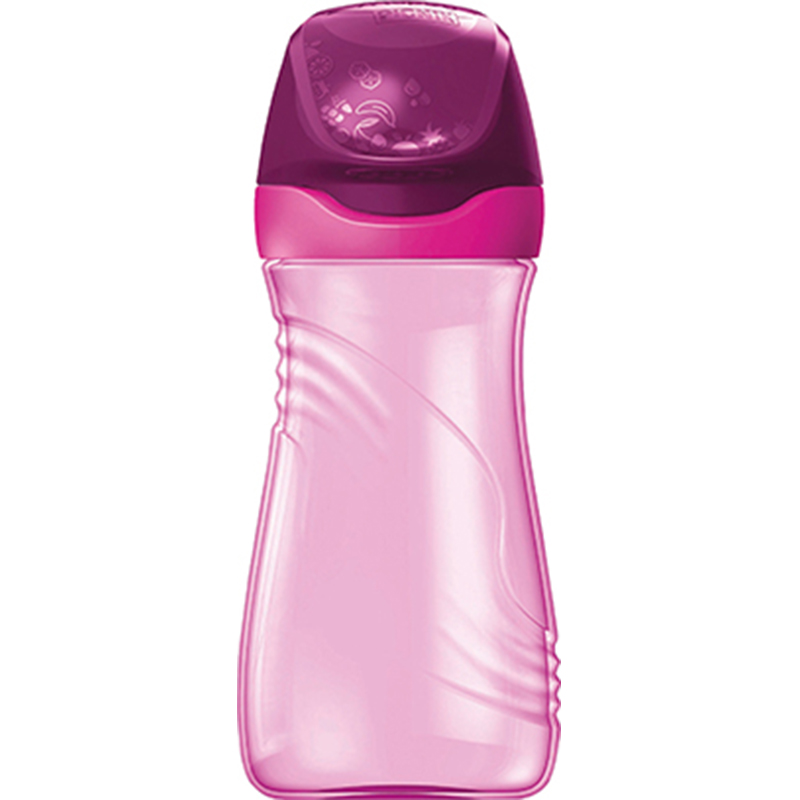 MAPED picink water bottle, Origin series. The model is in pink color and has a volume of 430 ml. The bottle is easy and pleasant to use. It opens only by lifting the lid. Prevents spills and leaks, even if the bottle breaks or falls. Cleaning is easy, because when disassembling the so-called a large poison through which it is convenient to reach and wash.The nozzle itself is disassembled.