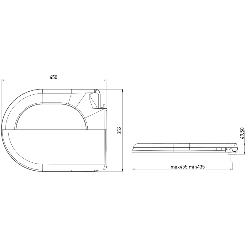 Toilet seat seat model GALA, manufactured by IZYAPI. The seat measures 450 x 353 mm and is made of white plastic.