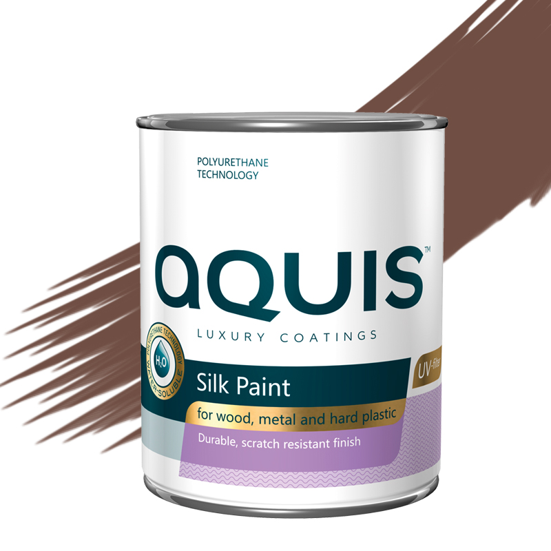 Water-based silk paint Silk Paint from AQUIS. The product is a polyurethane one-component paint for indoor and outdoor use. Silk paint is suitable for painting wooden, metal, concrete surfaces, as well as for hard plastic surfaces, furniture, windows, MDF, radiators and appliances. It can also be applied on powder coated surfaces. Silk Paint creates a strong, dirt- and scratch-resistant coating thanks to special Teflon additives.