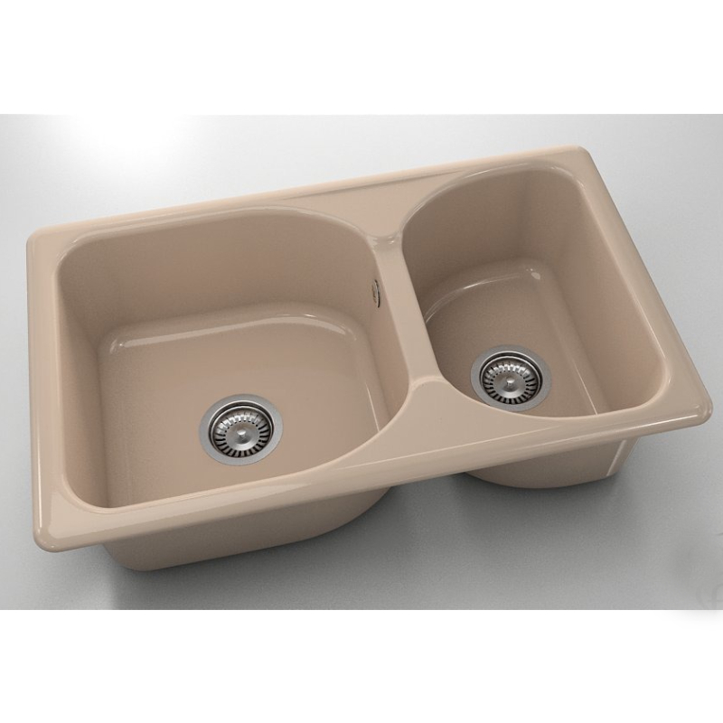 Built-in kitchen sink of the FAT brand. Made of polymer marble with a size of 80 x 49 cm with two troughs. The sink is pink onyx. The set includes a high-quality Italian sink trap with a size of φ90 mm.