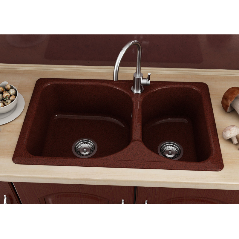 Polymer marble kitchen sinks are preferred over alpaca sinks because of the wide variety of colors, limestone overlays and white spots are not visible. In addition, polymer marble sinks have a much more elegant shape, beautiful design and at the same time offer high quality and functionality.