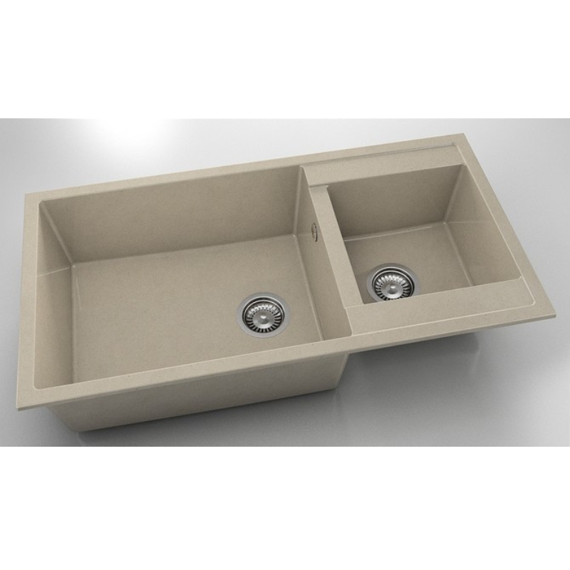 This double sink is the ideal solution for households looking for convenience and efficiency in washing up and preparing food. With a main bowl measuring 55 x 43 cm and an additional 30 x 30 cm, it provides space for performing various kitchen tasks simultaneously.