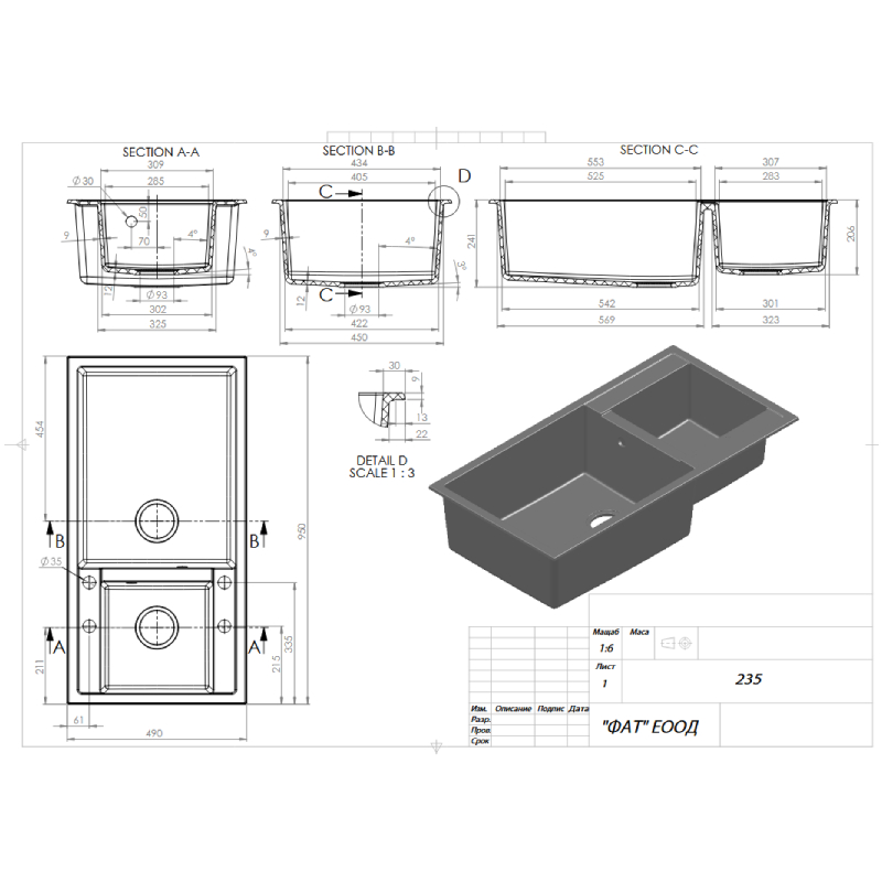Made of high-quality FATGRANIT, the sink offers exceptional resistance to impacts, scratches and chemicals. Thanks to the antibacterial coating with silver ions, it provides high hygiene and easy maintenance.