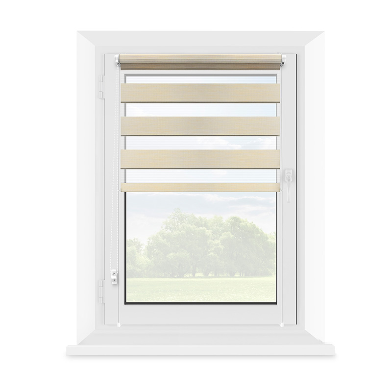 The Click and Day interior roller blind is an innovative and functional solution for interior blinds. Blinds of this type will not only perform their function as a sunscreen product, but will also improve your interior. They are designed to transmit light without having to completely remove the fabric. Day and Night roller blinds combine two types of fabric - transparent, which transmits light and dense, which provides protection from light and privacy. Thanks to this you can now choose whether to enjoy the view through the window or the cozy atmosphere in the home.