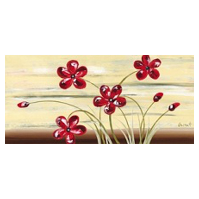 Picture Red flowers measuring 30 x 56 cm. It is an image of a print /print/, made by high quality laser technology. The painting has a stylish and beautiful frame made of MDF, and the canvas is made of linen paper, which has a slight relief.