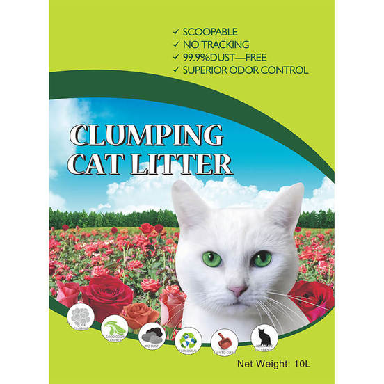 Cat toilet 5l rose. Origin: China. The product is a toilet sand for cats made of calibrated bentonite with rose scent.