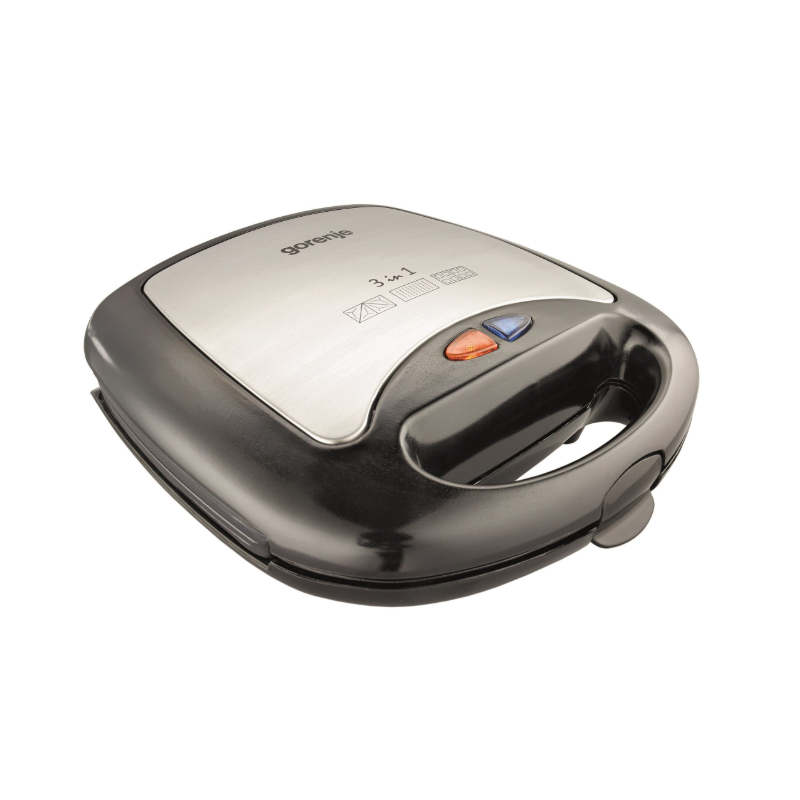 The grill toast SM703BK from GORENJE has a power of 700W. The device for sandwiches has a 3in1 edge and the set includes replaceable plates. All attachments have a non-stick ceramic coating. An indicator light shows when the dishes are ready. A special compartment for the cable does not allow it to interfere during use. The handles remain cool even when the maximum temperature is reached. The housing is made of stainless steel. The baking area is 20 cm wide and 10 cm high.