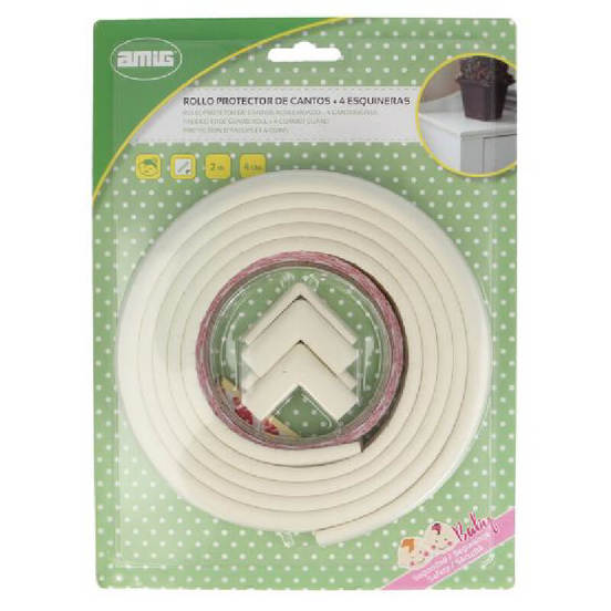 Set of foam covers for corners and edges from AMIG, model CS504.The set includes 4 corner protectors and 2 m self-adhesive stopper. Made of flexible foam, rubber and latex.The installation is done with double-sided adhesive tape, which is included in the set. Can be used on tables, chairs and other furniture with dangerous edges.