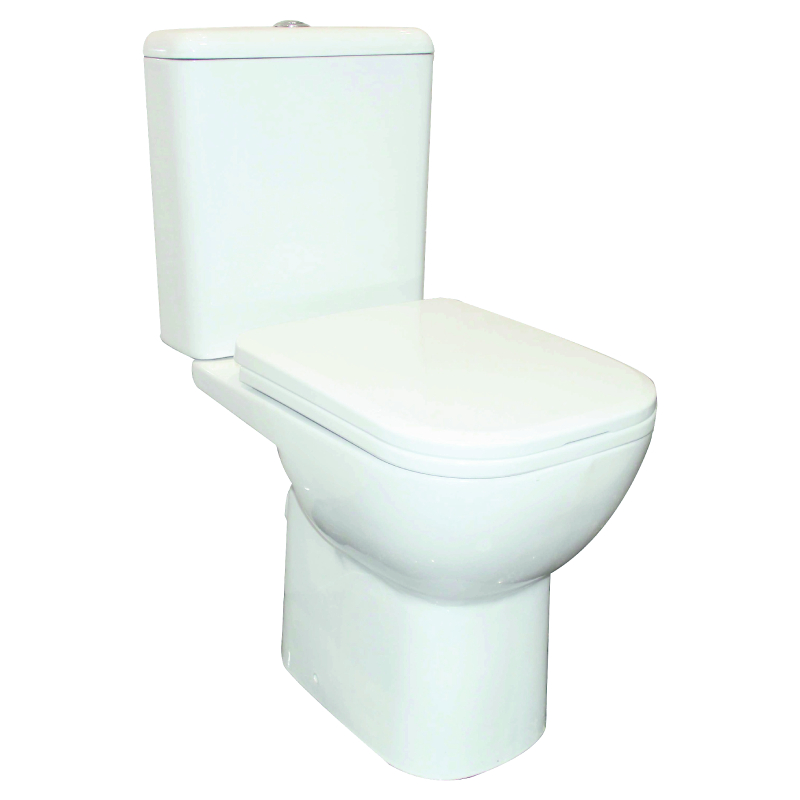 Monoblock with rear drain INTER CERAMIC has high resistance to chemicals. Sanitary ware products are covered with glaze, which provides additional protection and a shiny surface.