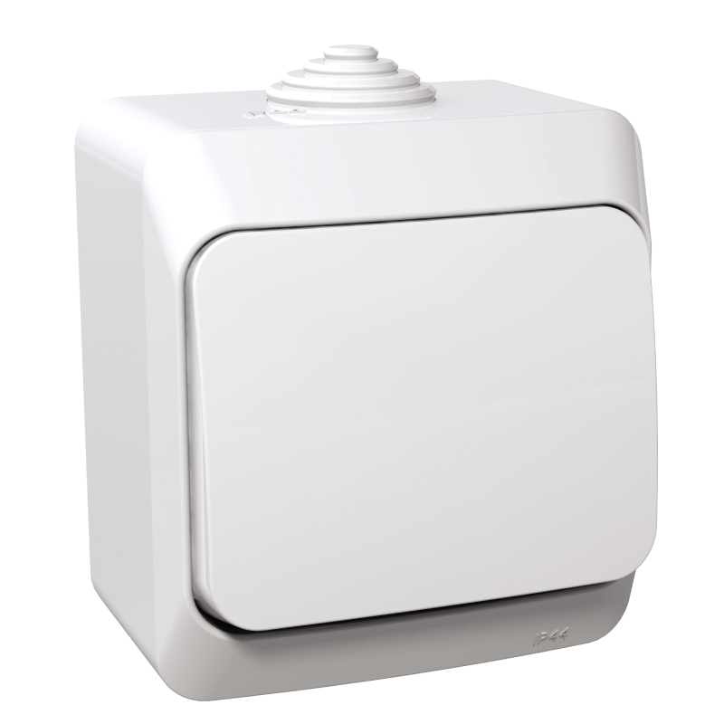 Single electric switch for lighting from the CEDar Plus series of the SCHNEIDER ELECTRIC brand. Made of high quality white plastic. Designed for outdoor installation. The key has a high degree of protection IP44, which makes it waterproof and suitable for outdoor use, as well as in humid rooms.