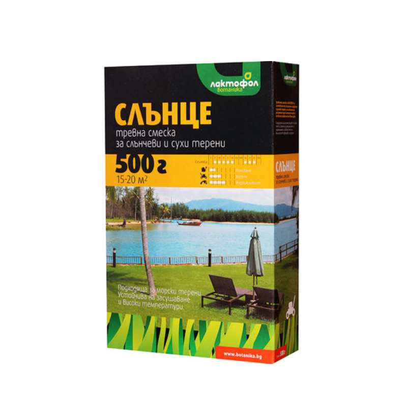 The Sun grass mixture is very drought-resistant and designed to withstand hot climates. Recommended for the construction of lawns for which good watering is not provided. It is suitable for marine climate. LACTOFOL grass mixtures are composed of specially selected varieties of grasses for maximum results in climatic and soil conditions in Bulgaria.