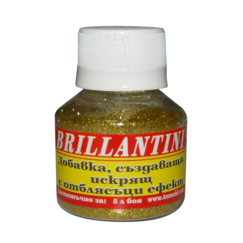 The decorative brocade coating Brillantini by TERAZID is a color additive with highlights and a sparkling effect for all types of latex and decorative paints. The product is intended for interior and exterior use. The additive is poured into the paint immediately before application, then mixed by hand. Add carefully until the desired effect is achieved. To avoid oversaturation of the paint, a sample is recommended before final application. A bottle of 0.30 g is enough for 5 liters of latex or decorative paint.