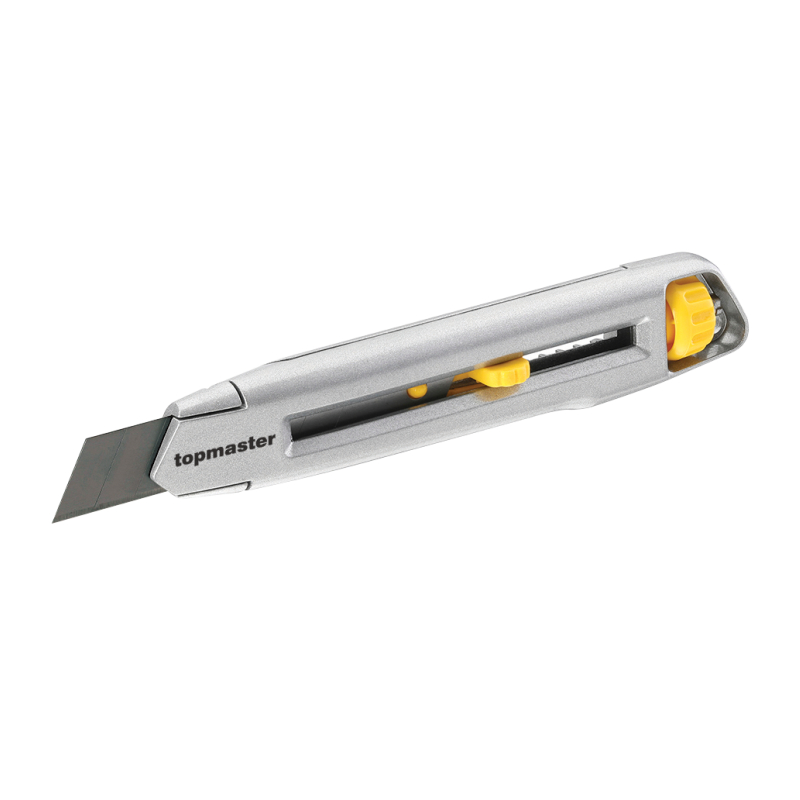 Model knife of the TOPMASTER brand. The knife measures 160 x 18 mm. It has a metal body and a breakable SK2 steel blade. It features triple sharpening of the cutter.